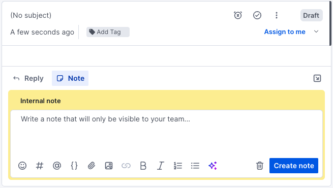 Specify the note's subject and body using the fields provided. Then, select Create note to send it.